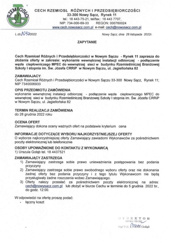 [2022-11-29] ZAPYTANIE - PODŁĄCZENIE DO SIECI WEWNĘTRZNEJ WĘZŁA CIEPŁOWNICZEGO
